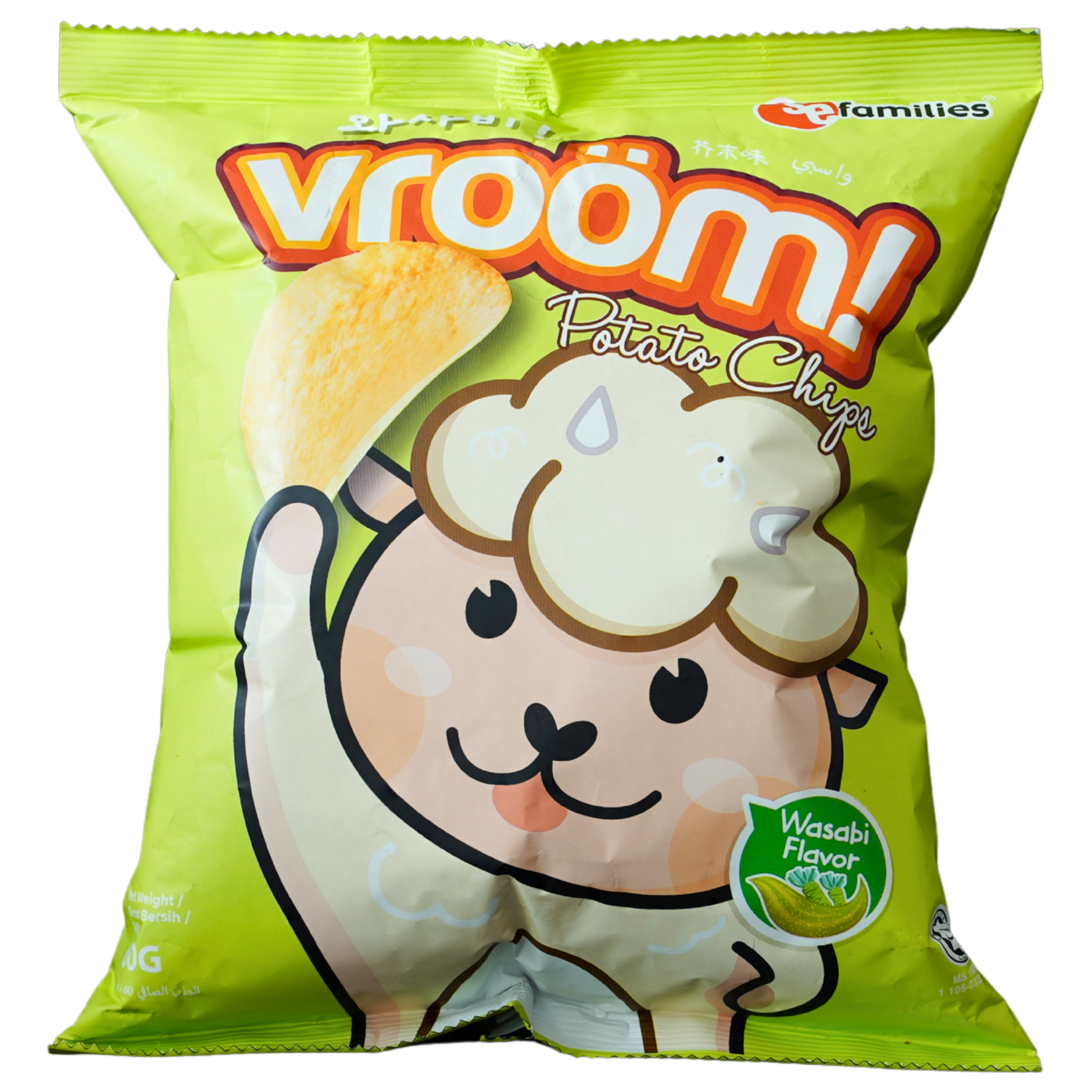 . VROOM Potato Chips 60g (Original) VROOM Potato Chips 60g (Spicy) VROOM Potato Chips 60g (BBQ) VROOM Potato Chips 60g (Black Pepper) VROOM Potato Chips 60g (Cheese) VROOM Potato Chips 60g (Wasabi)